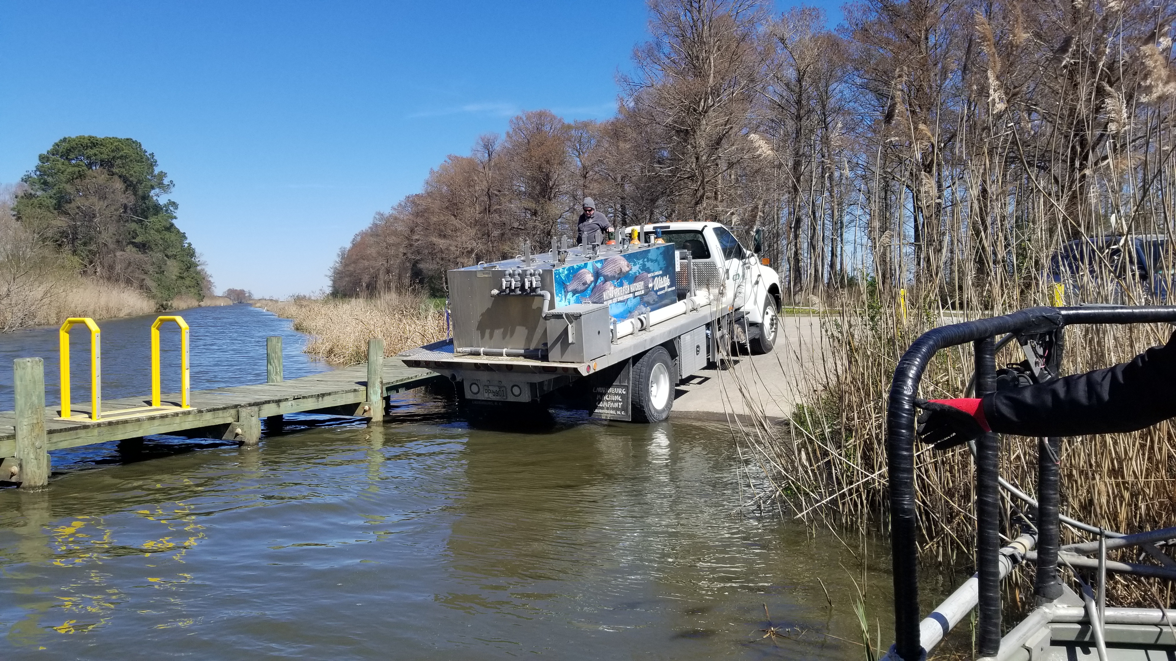 Watha State Fish Hatchery Truck Bringing Bluegill to Mattamuskeet for Stocking