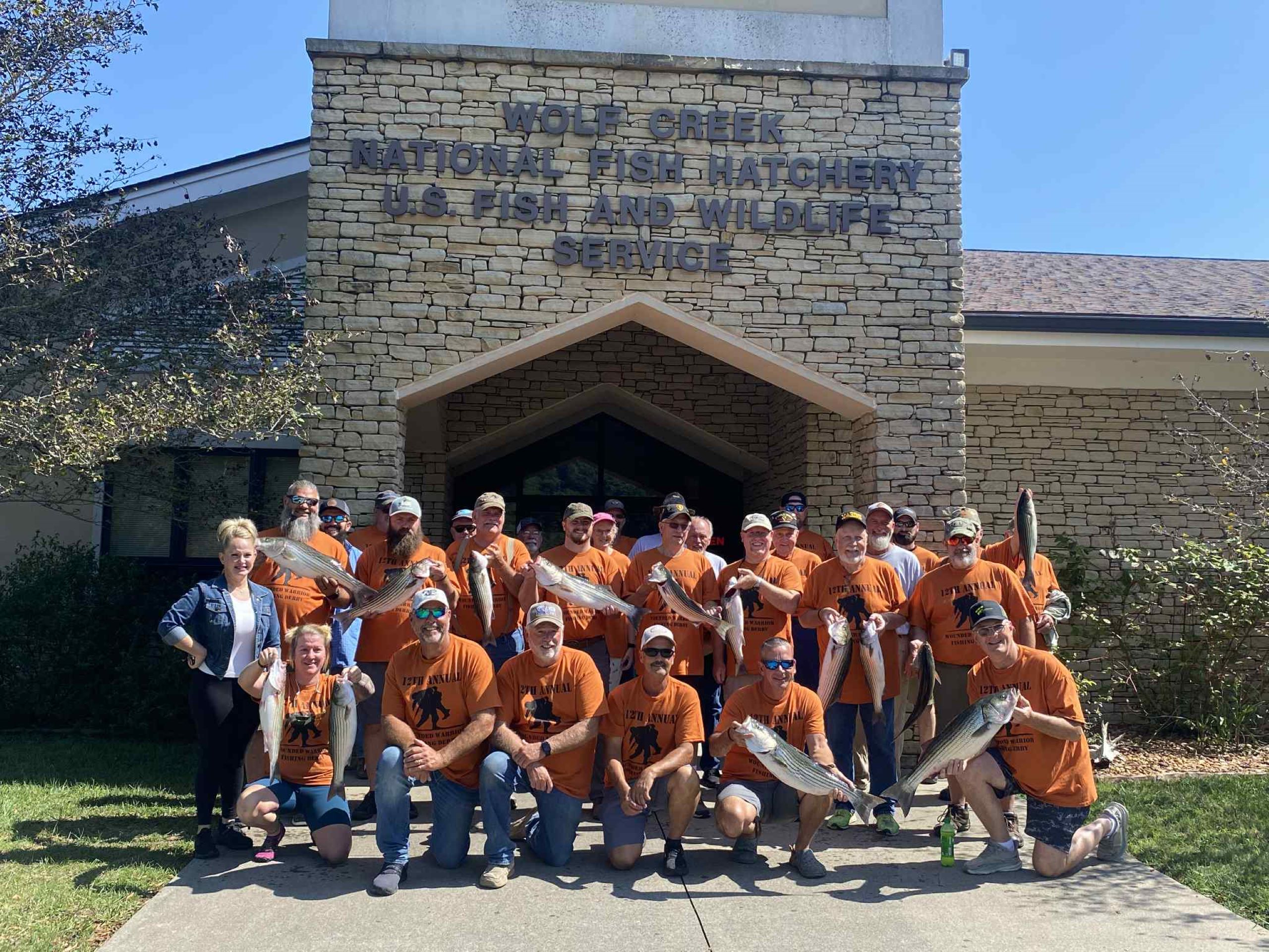 Participants of the 12th Annual Wounded Warrior Fishing Event holding their catches of the day.