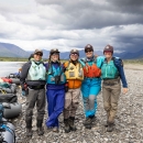 U.S. Fish and Wildlife Service employees (left to right), Heather Bartlett, Maria Berkeland, Allyssa Morris, Jen Reed, and Lisa Hupp during their 10-day backcountry expedition of the Wind Wild and Scenic River, July 2022.