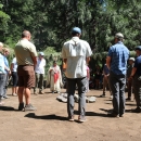Scientists from the U.S. Fish and Wildlife Service, National Oceanic and Atmospheric Administration Fisheries and California Department of Fish and Wildlife participate in a July 11 ceremony with Caleen Sisk, chief and spiritual leader of the Winnemem Wintu. The agency representatives were invited to receive a tribal blessing and share their thoughts on the day, when winter-run Chinook salmon were returned to habitat they hadn’t swum in since the 1940s.