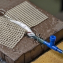 A winter-run juvenile Chinook salmon after an acoustic tag was surgically implanted