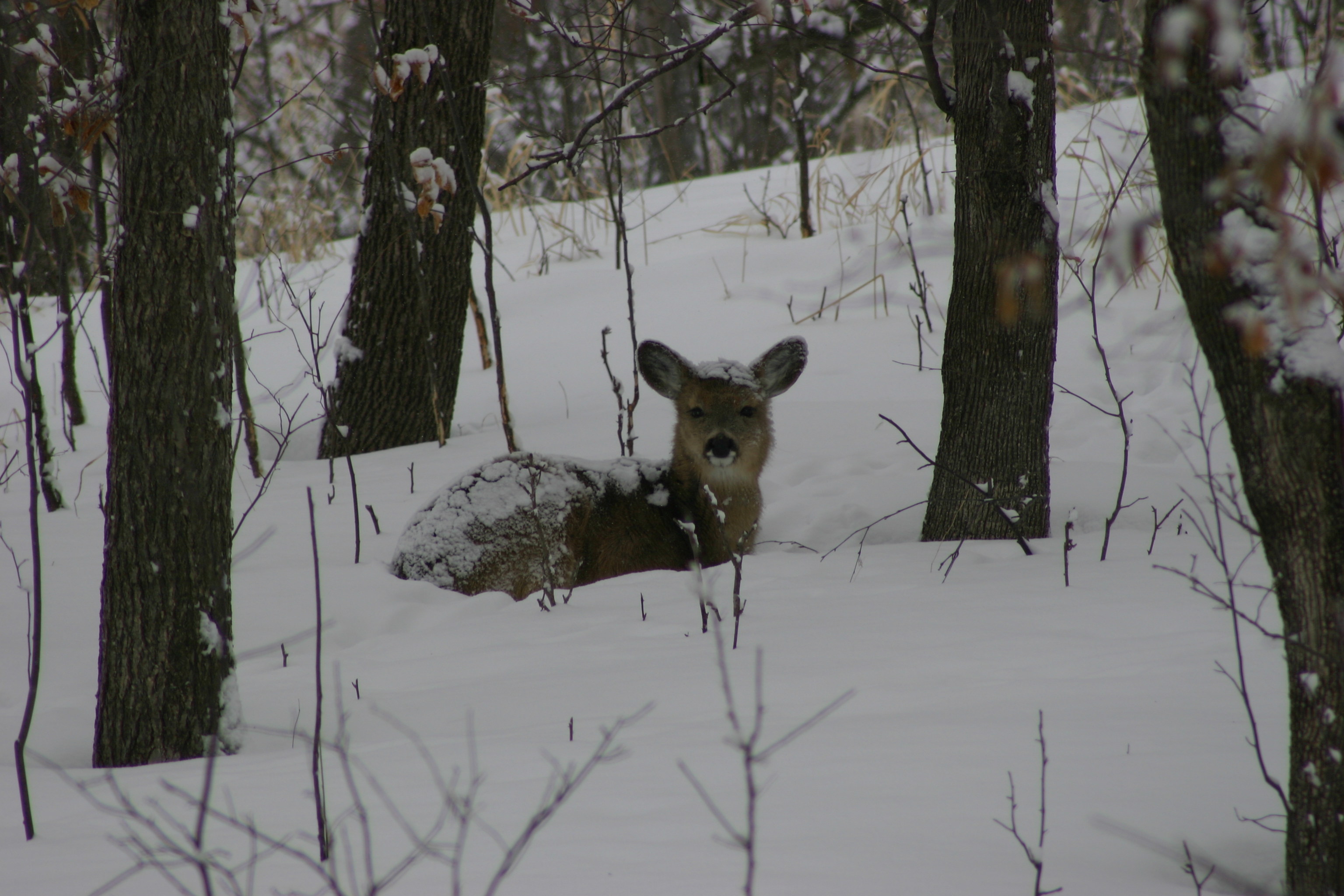 yearling deer bedding in snow lisawiersma-USFWS.JPG
