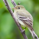 A yellow-bellied flycatcher perches in the boreal forest of Arctic National Wildlife Refuge near the Porcupine River.