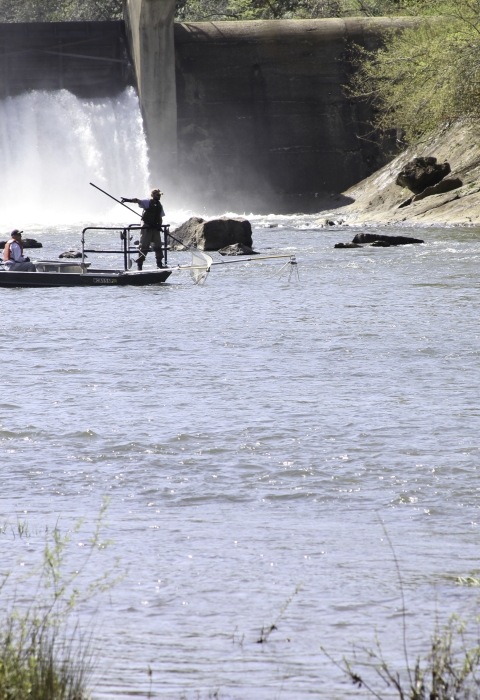 - UNC-Asheville undergraduate Jessica Davis begins a project tracking sicklefin redhorses with radio transmitters released into the Oconaluftee River upstream of Ela Dam.