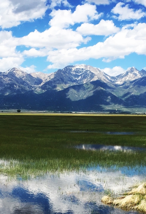 The surrounding mountains feed the arid valley with precious surface water and replenish an expansive underground reservoir. The mountain snow melt and artesian wells provide needed water to the agricultural community and to the rivers, creeks, and wetlands that thread across the valley floor.