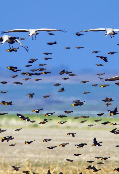 Birdsong by day, coyote chorus by night. Dramatic cliffs and rimrock sit side-by-side with lakes, potholes, and marshes. Desert denizens and waterfowl sharing the same rugged landscape.