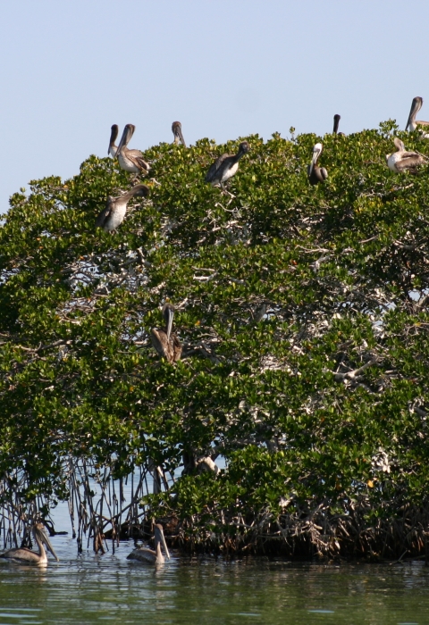The Pinellas National Wildlife Refuge(NWR), was established in 1951 as a breeding ground for colonial bird species. Herons, cormorants, egrets, endangered brown pelicans and many more species use this quiet refuge for nesting. Tarpon Key, one of the islands making-up the refuge, hosts the largest brown pelican rookery in the state of Florida. The abundant green sea grass beds around the island are protected from motorized boat activity.