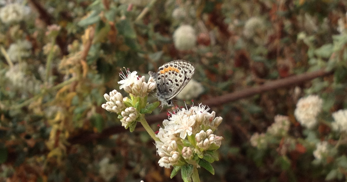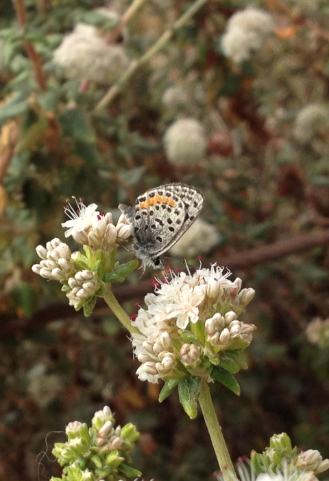 Adults drink the nectar of seacliff buckwheat and use the same plant to deposit its eggs, which turn into caterpillars and feed on the leaves.
