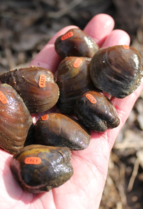 The purple cat's paw pearlymussel is one of our rarest freshwater mussels and it was truly on the brink of extinction when listed in 1990. At the time of listing, a few live adults could be found but they were too old to reproduce. We thought that the species was functionally extinct. In 1994, surveyors found a reproducing population in Killbuck Creek, Ohio. Since that time, successful captive propagation efforts have lead to multiple reintroductions of the species into streams where it historically occurred.