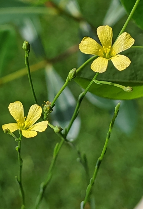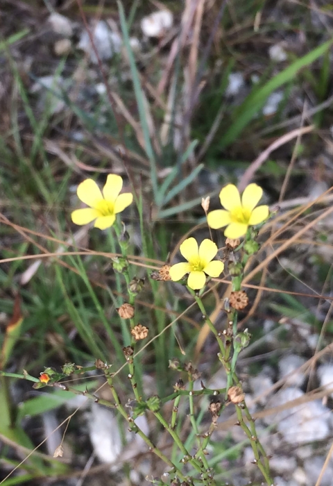 Sand flax is a perennial herb in the linen and flax family (Linaceae). It has tiny yellow flowers and is endemic to pine rocklands and marl prairies in extreme South Florida.