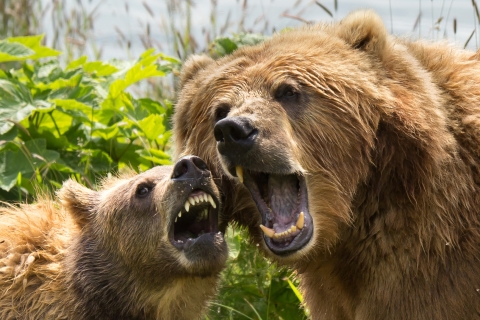 Interior brown bears are sometimes call Grizzly Bears. Grizzlies are their own subspecies (Ursus horribilis). Besides size, many believe the temperament of grizzlies to be different from coastal brown bears. Grizzlies have been known to react to human encounters at shorter distances; possibly having something to do with their subspecies specific epithet horriblis. Many believe the “grizzly” came along because of their grizzled look of silver-tipped fur.