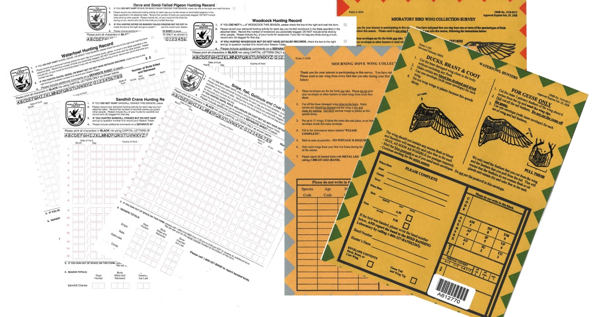 - Email migratorybirdharvestsurveys@fws.gov and leave your name, address, hunter number (if you know it), and the number of envelopes you need