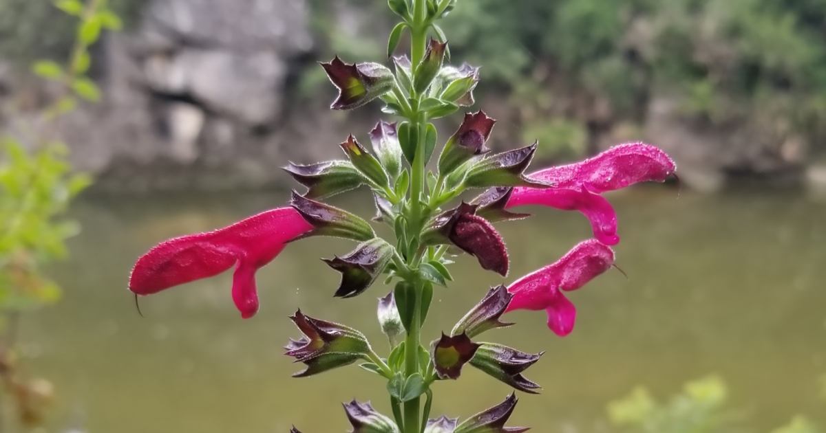 Big red sage (Salvia pentstemonoides) is a perennial herbaceous plant in the mint family (Lamiaceae) that occurs along streams and narrow canyons in the Edwards Plateau of central Texas. The species was first described in 1848, based on the first documented specimens collected from three years prior along the upper Pedernales River in Gillespie County. Botanical authorities regard S. pentstemonoides as a distinct, valid species. However, the species name has often been misspelled as penstemonoides, without the extra “t”.