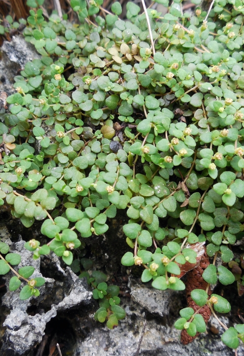 Deltoid spurge (Chamaesyce deltoidea ssp. deltoidea) is a perennial herb with wiry stems and tiny wedge-shaped leaves that grow in mats over exposed limestone, arising from an underground, woody taproot. It is only found in the pine rockland ecosystems of central Miami-Dade County.
