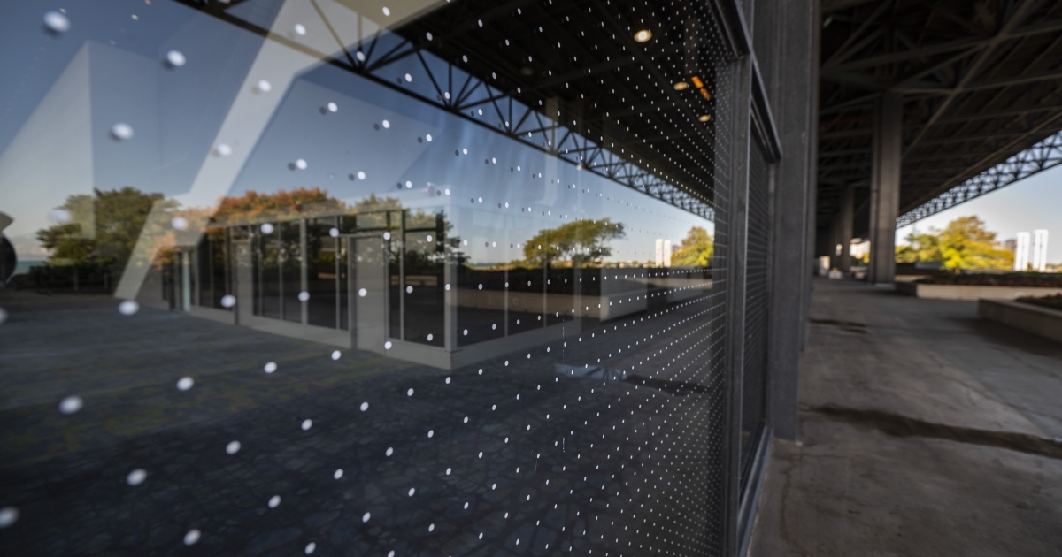 After a collision event where nearly 1,000 migratory birds died during one night in October 2023, several conservation organizations provided a suite of recommendations to McCormick Place to reduce the risk of future similar events. Experts at U.S. Fish and Wildlife Service also reached out to offer technical assistance, and helped their staff to clarify and prioritize actions to make their glass visible to birds and reduce light emanating from the facility that can attract and disorient birds. The McCormick Place leadership and board of directors expressed their commitment to implement lasting solutions to reduce and ideally prevent collisions at their facilities and has followed through on that commitment. They have implemented a “curtains-closed-by-default” policy at the event center, which prevents light from escaping much more frequently than their previous approach. Additionally, and most impressive, during the summer of 2024 they installed nearly 120,000 square feet of a 2” x 2” dot pattern developed by Feather Friendly, making nearly 2 football fields of glass bird-friendly! Preliminary monitoring results by the Chicago Field Museum illustrate that these actions worked very well during the 2024 fall migration.